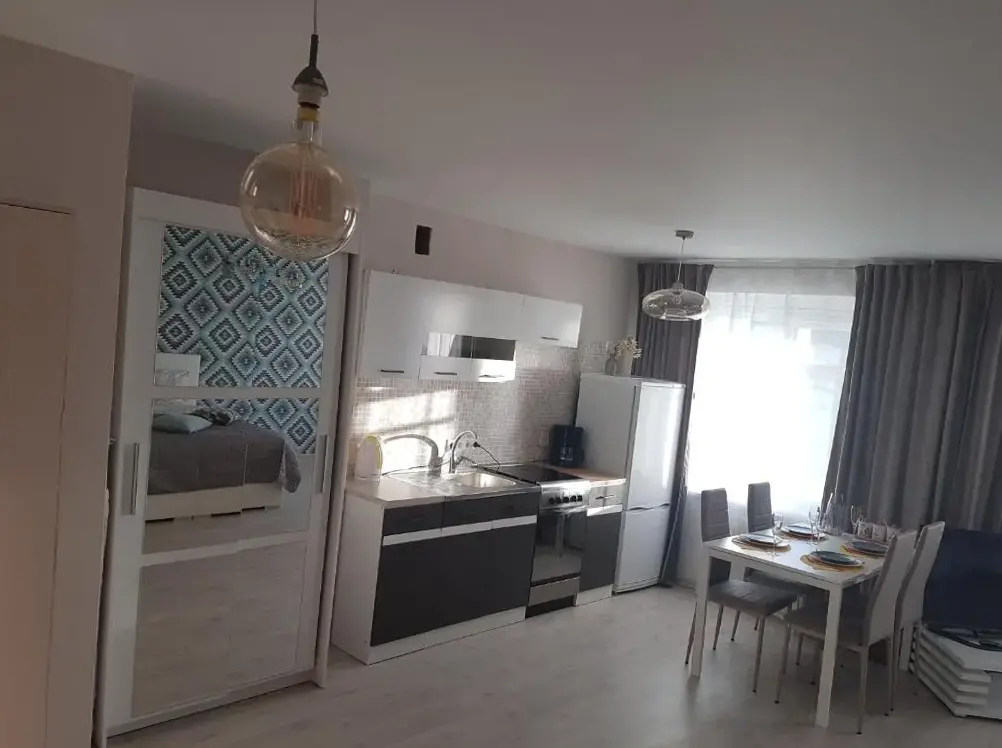 Weitere Informationen zu SMART flat - Ranna 49Die Ferienwohnung Hariduse 20 liegt zentral in Sillamäe und bietet eine praktische Ausstattung für einen angenehmen Aufenthalt. Die Wohnung befindet sich im Erdgeschoss mit Blick auf begrünte Flächen und Bäume, was sie besonders ruhig gestaltet. Ein großer Wohnküchenbereich steht zur Verfügung, der durch seine offene Gestaltung Raum für Entspannung oder gemeinsame Aktivitäten schafft.